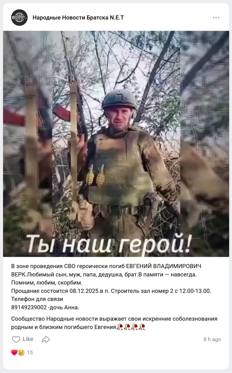 Дата сообщения о гибели:
