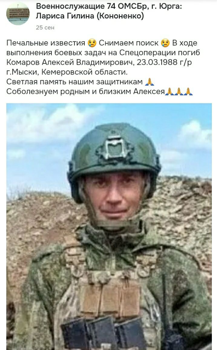 Дата сообщения о гибели: