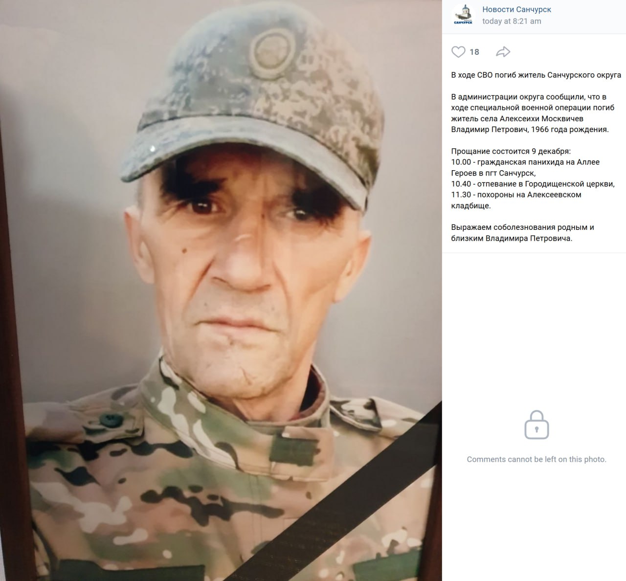 Дата сообщения о гибели: