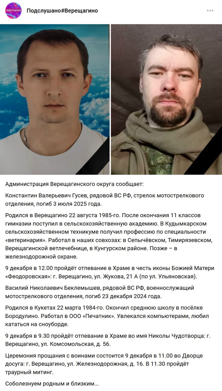 Дата сообщения о гибели: