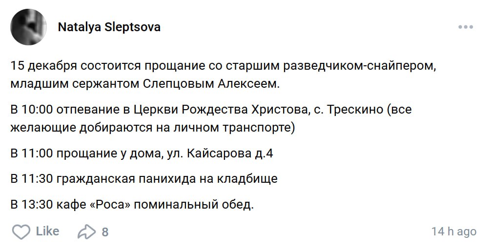Статус: Подробные данные по данному погибшему получены и обрабатываются.