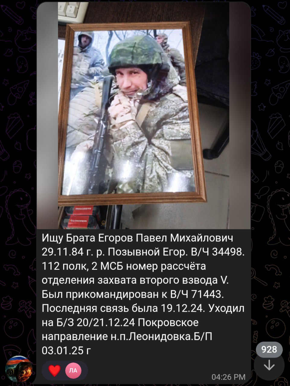 Дата сообщения о гибели: