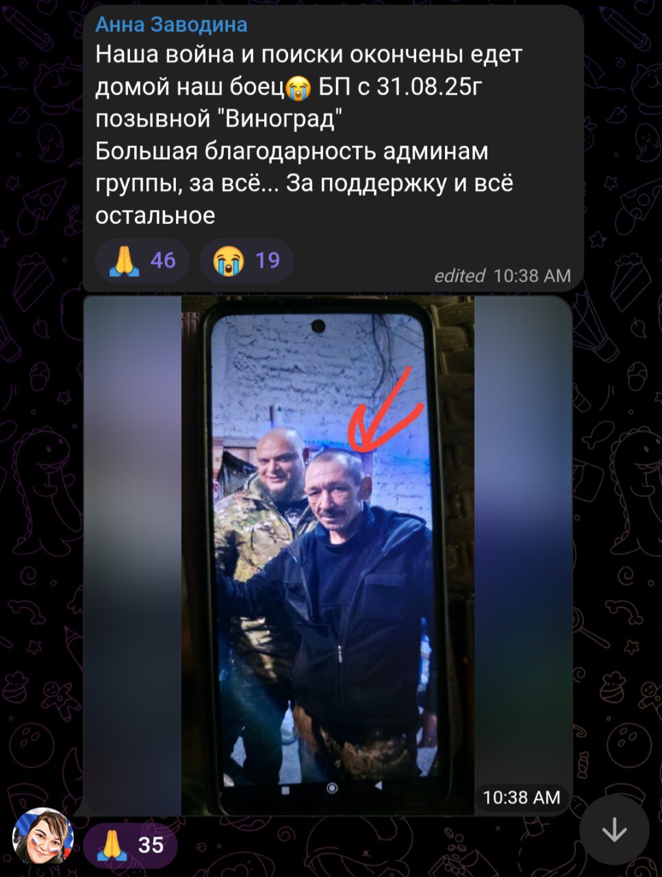 Скриншот сообщения о гибели