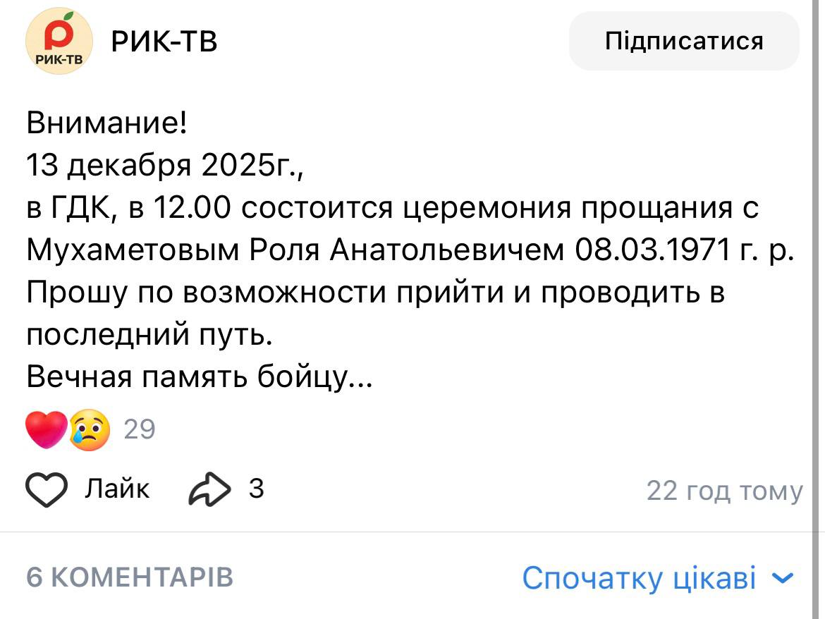 Дата сообщения о гибели: