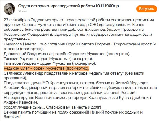 Дата сообщения о гибели: