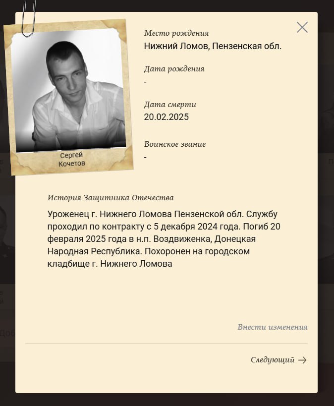 Скриншот сообщения о гибели