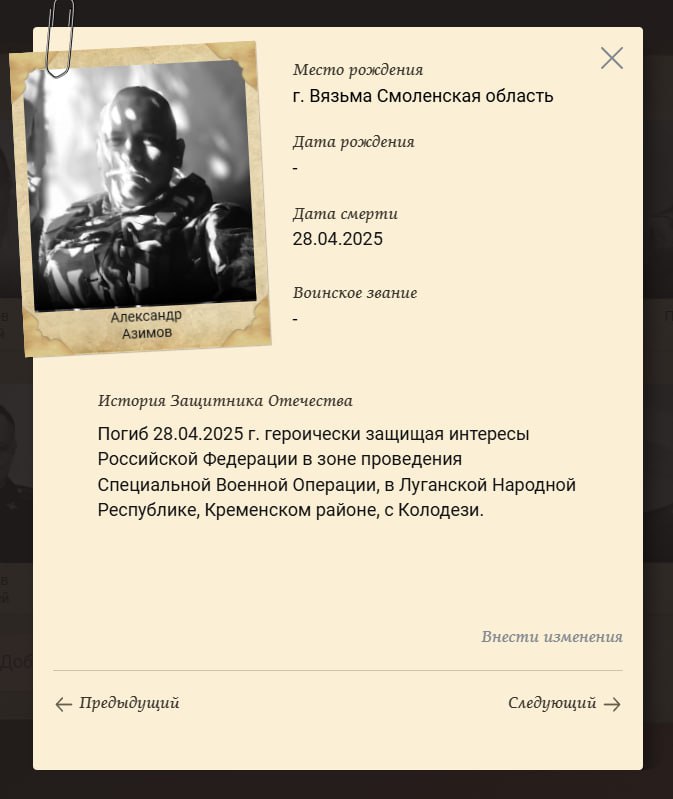 Скриншот сообщения о гибели