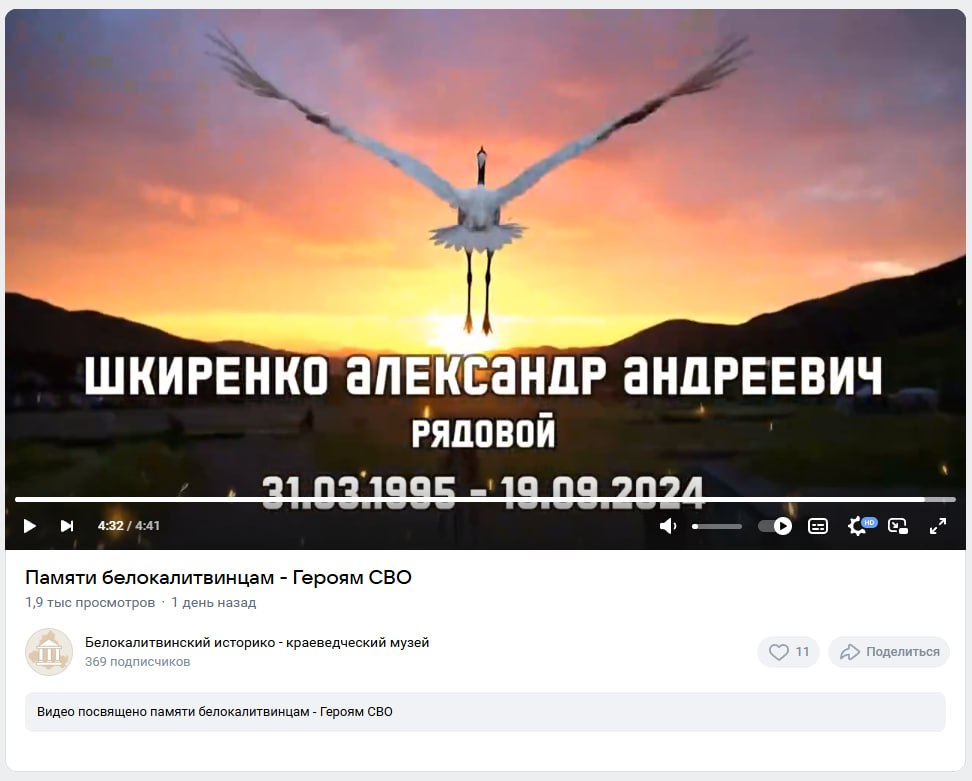 Дата сообщения о гибели: