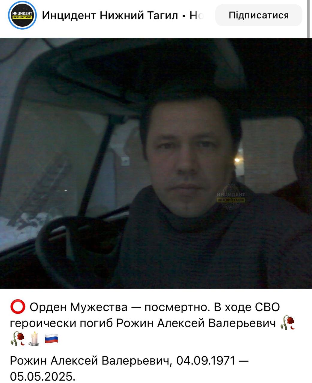 Дата сообщения о гибели: