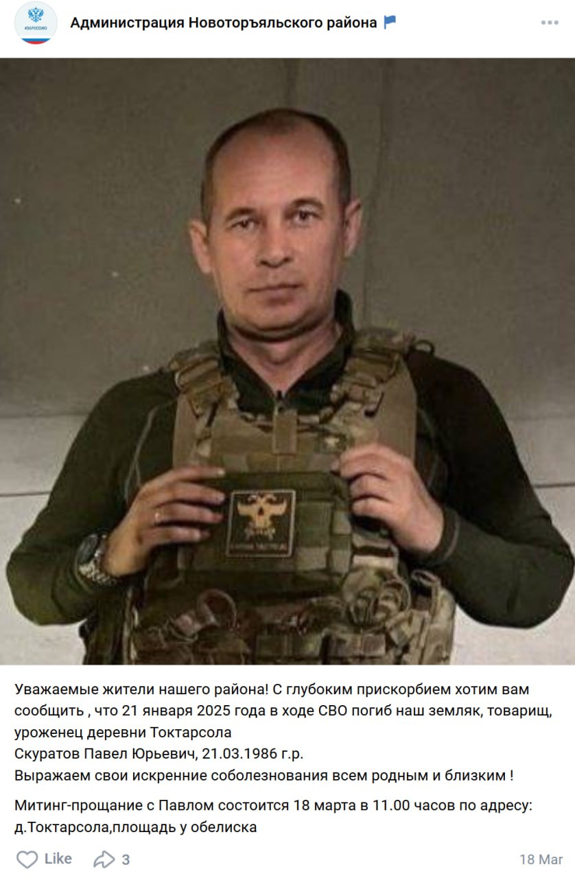 Скриншот сообщения о гибели