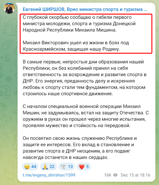 Скриншот сообщения о гибели