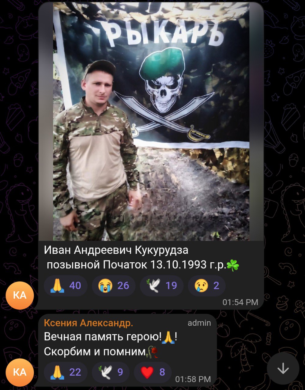 Скриншот сообщения о гибели