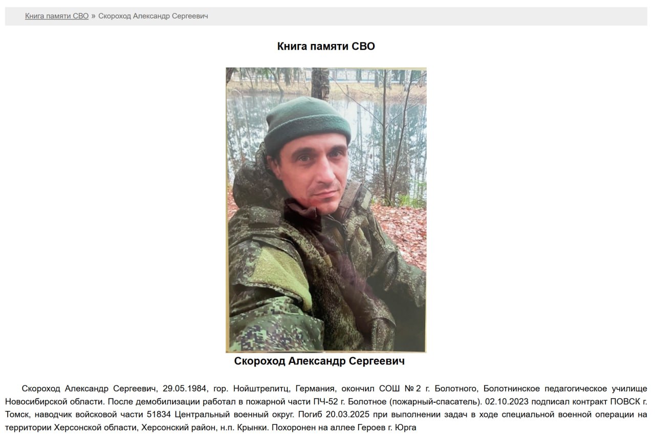 Скриншот сообщения о гибели