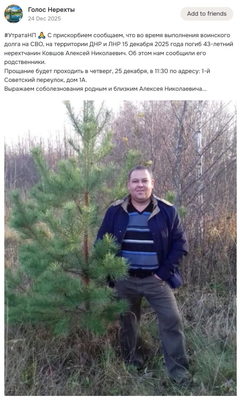 Дата сообщения о гибели: