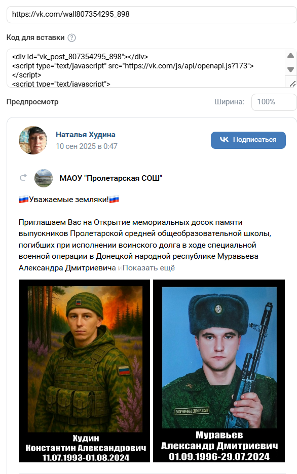 Скриншот сообщения о гибели