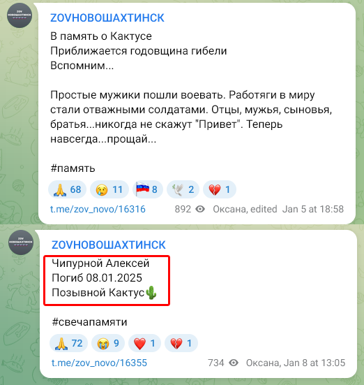 Скриншот сообщения о гибели