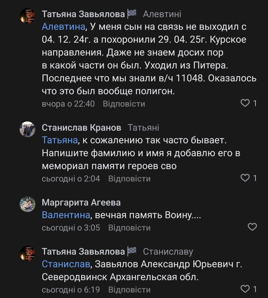 Дата сообщения о гибели: