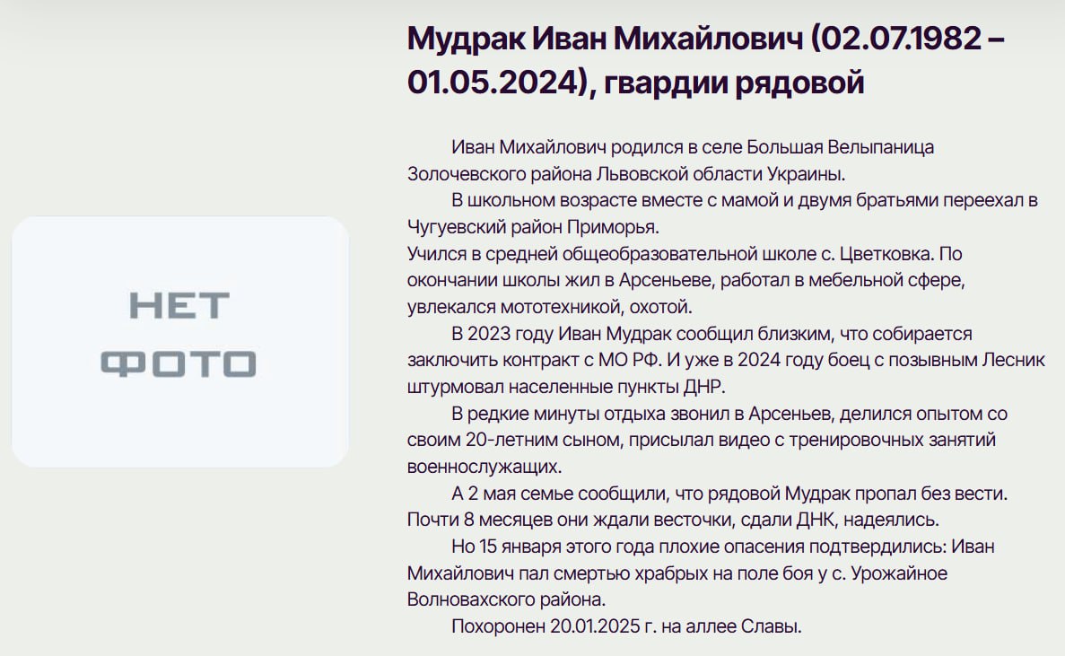 Подробные данные по данному погибшему