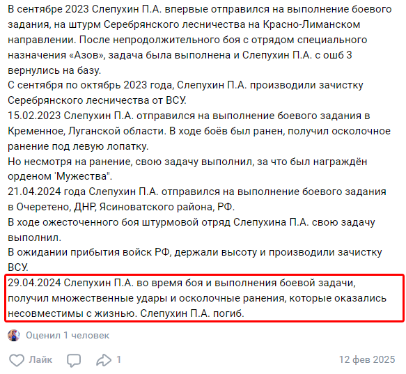 Скриншот сообщения о гибели