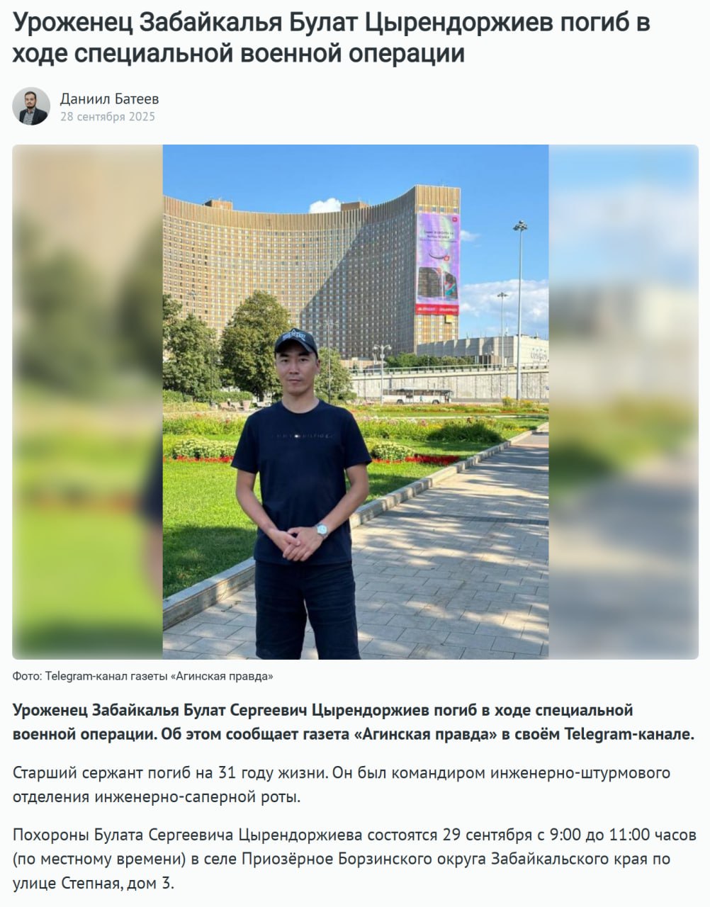 Дата сообщения о гибели: