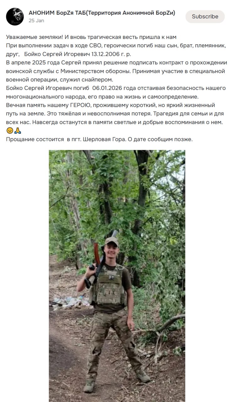 Дата сообщения о гибели: