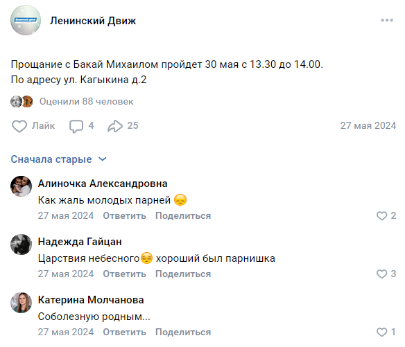 Скриншот сообщения о гибели