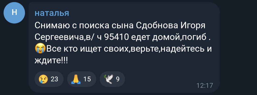 Дата сообщения о гибели: