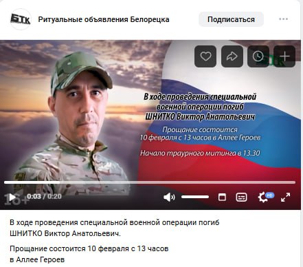 Дата сообщения о гибели: