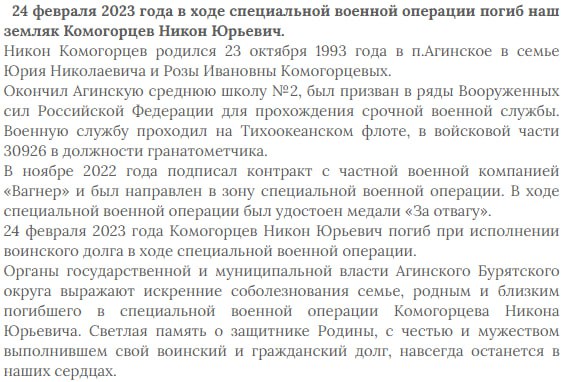 Дата сообщения о гибели: