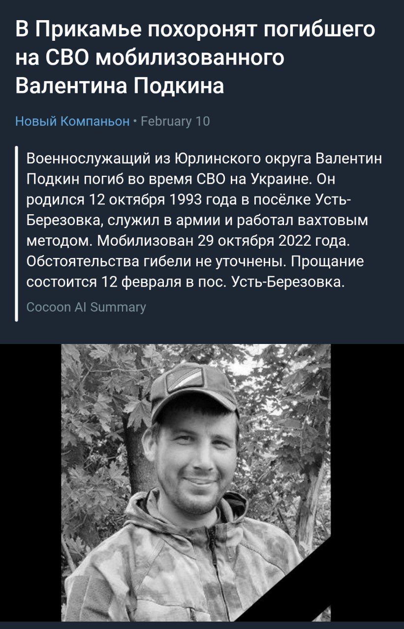 Дата сообщения о гибели: 12.02.2026