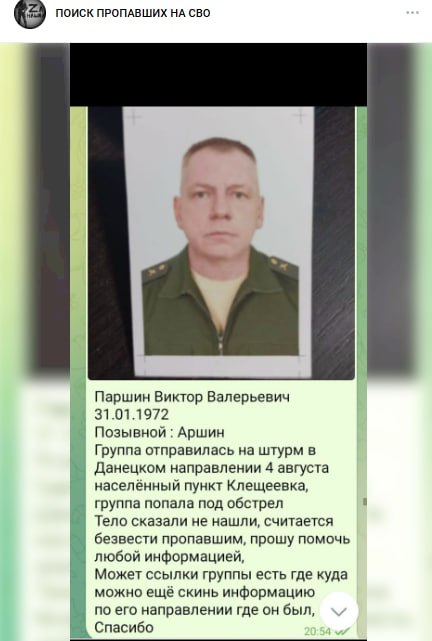 Дата сообщения о гибели: