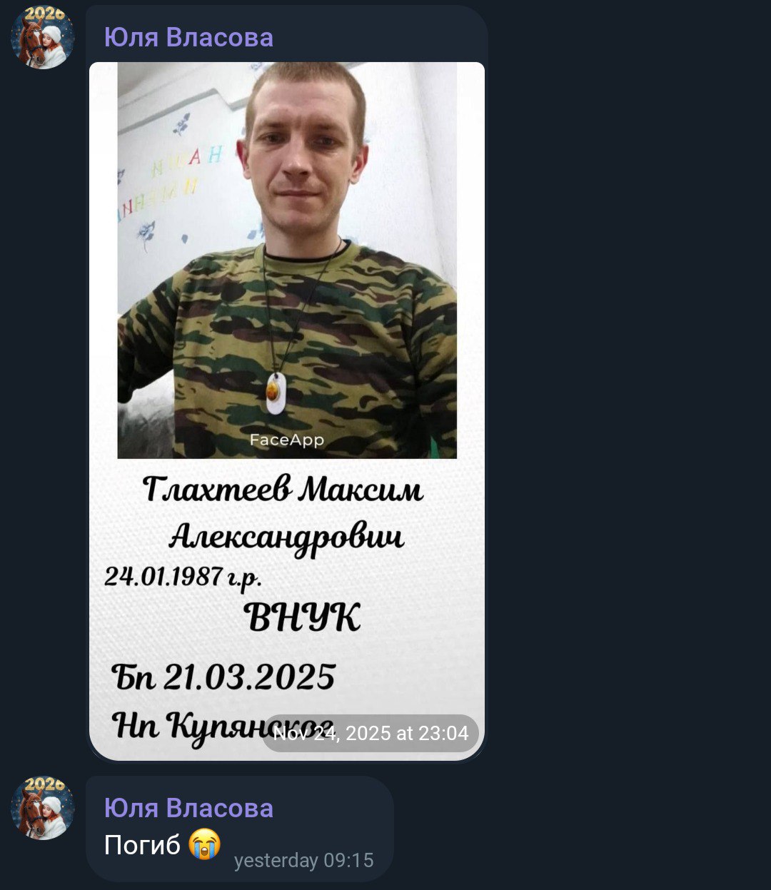 Дата сообщения о гибели: