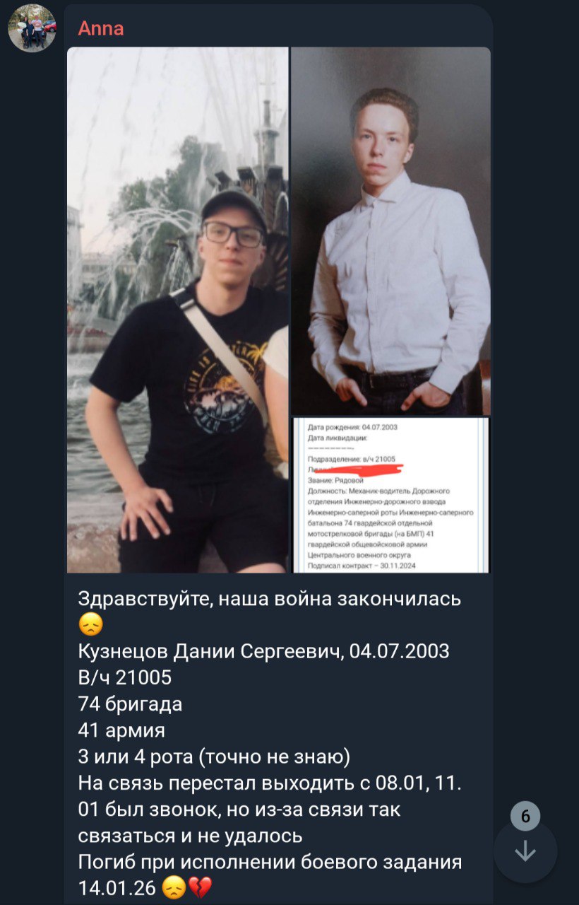 Дата сообщения о гибели: