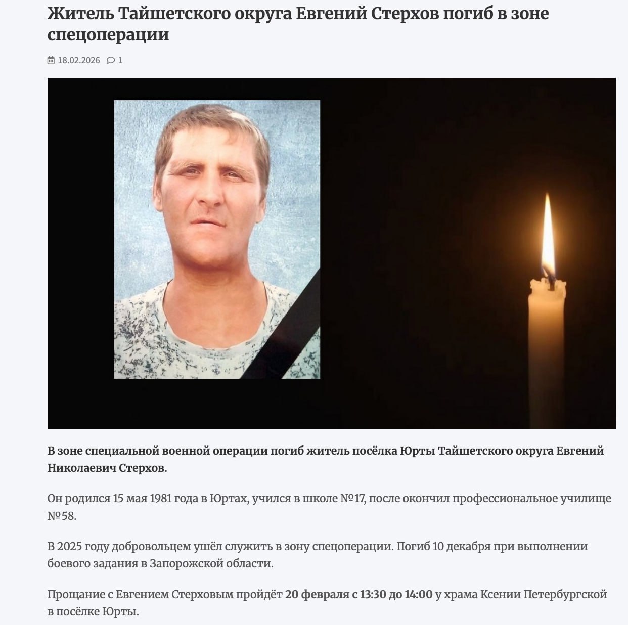 Дата сообщения о гибели: