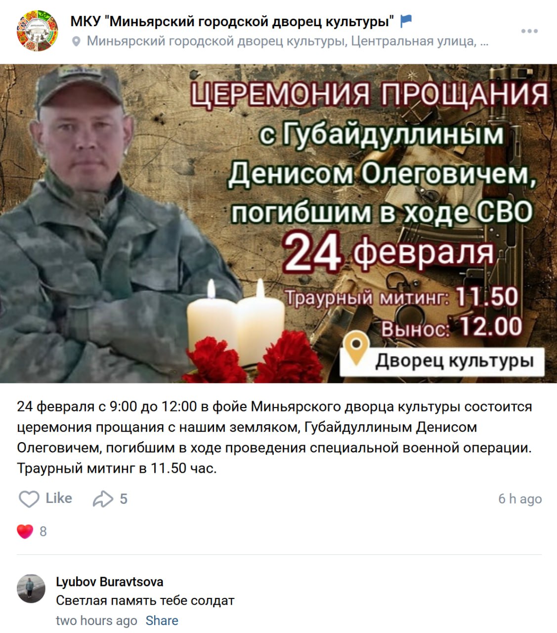 Дата сообщения о гибели: