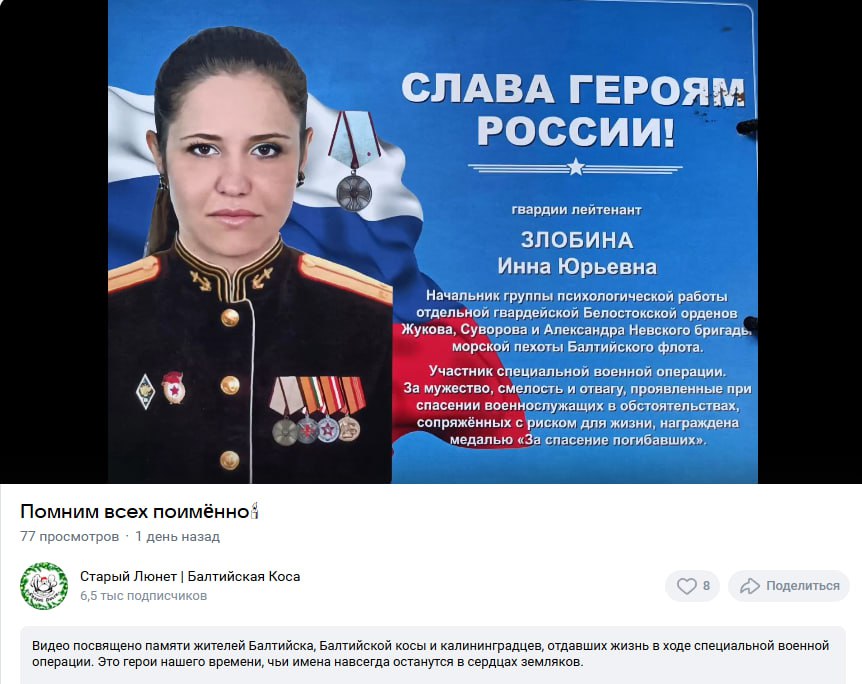 Скриншот сообщения о гибели