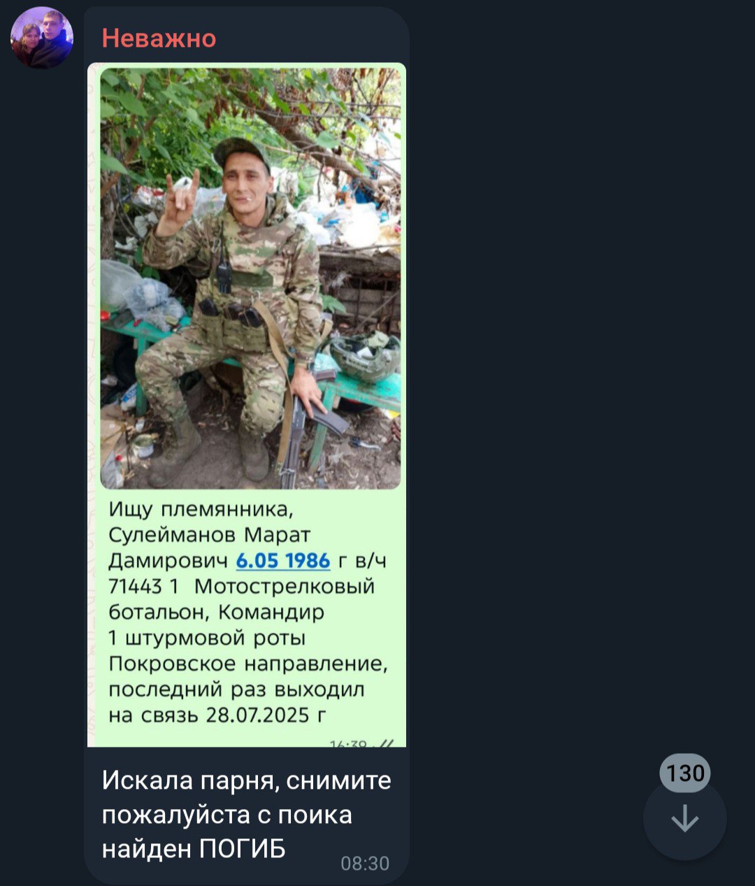 Дата сообщения о гибели: