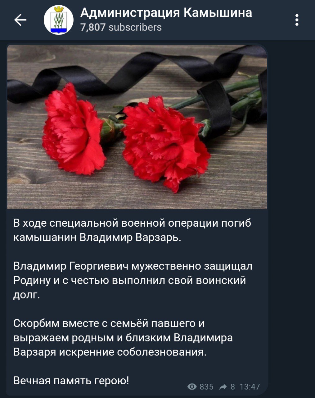 Дата сообщения о гибели: