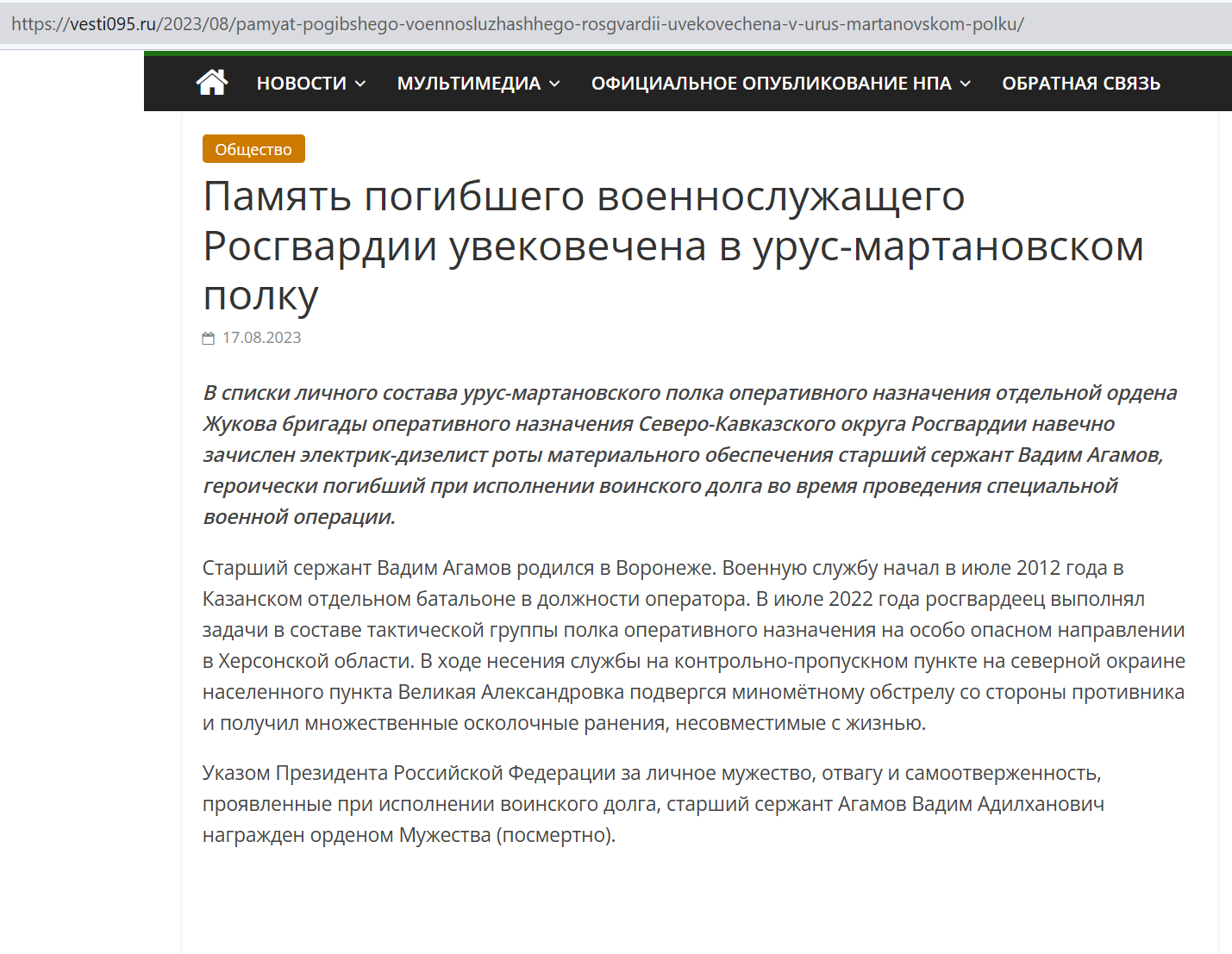 https://vesti095.ru/2023/08/pamyat-pogibshego-voennosluzhashhego-rosgvardii-uvekovechena-v-urus-martanovskom-polku/