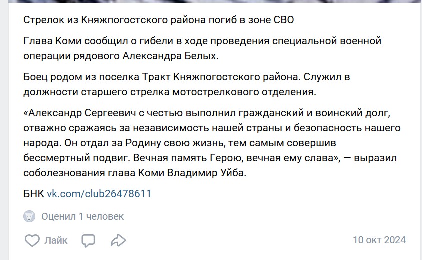 Дата сообщения о гибели: