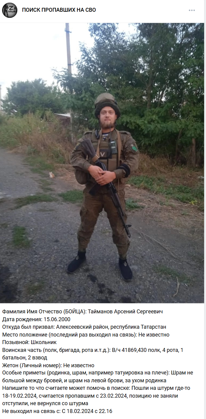 Скриншот сообщения о гибели