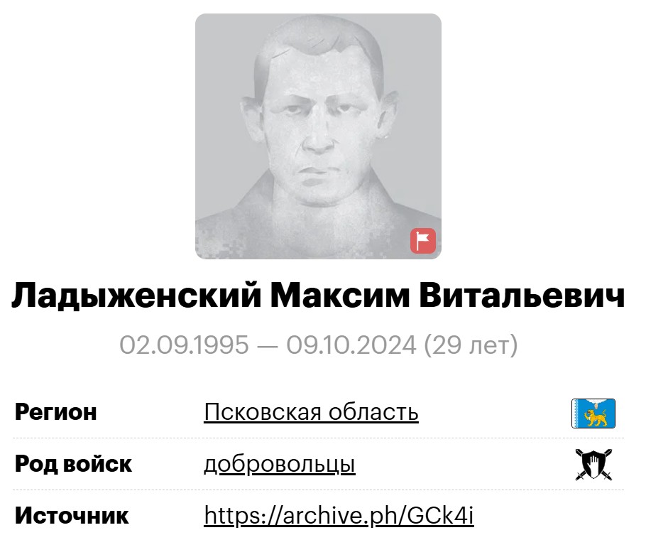 Скриншот сообщения о гибели