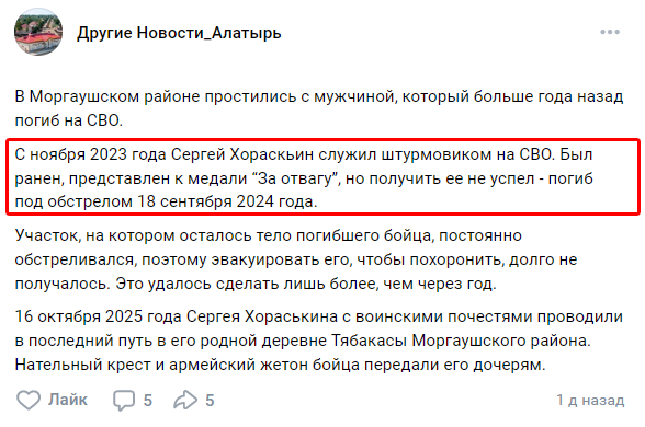 Скриншот сообщения о гибели
